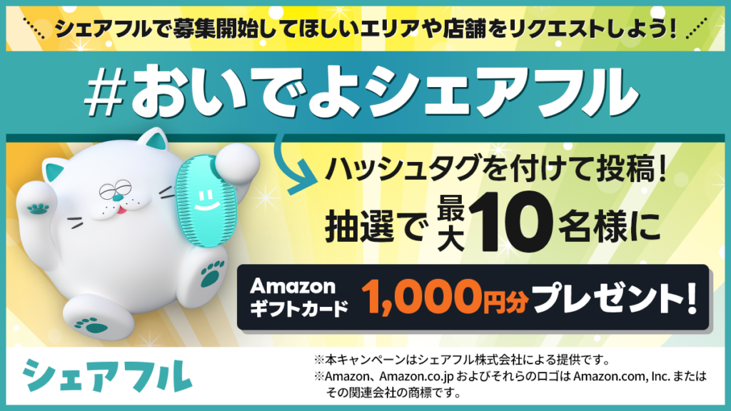 【Amazonギフトカードが当たる!】#おいでよシェアフル キャンペーン実施中!