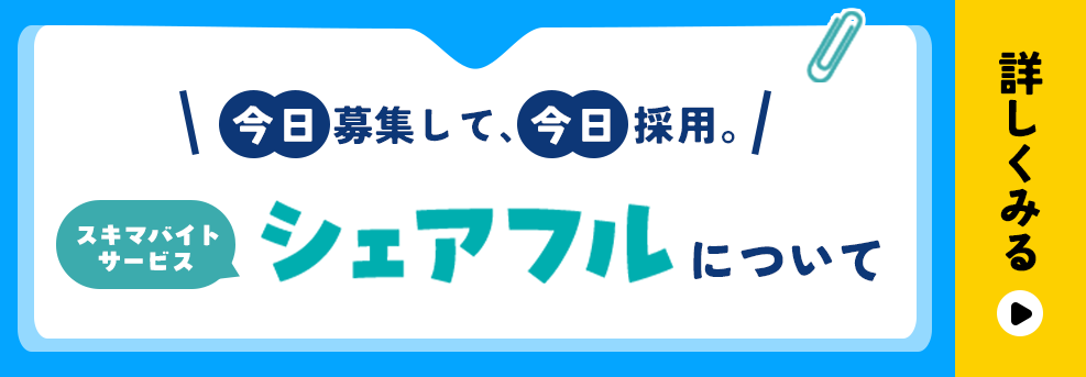 「アルバイト採用を始めたい」「アルバイト採用をしているが、今の方法が正しいか不安」とお考えの方は少なくありません。スキマバイトサービス『シェアフル』は。そのような方をサポートするために「アルバイト採用の教科書」を無料で公開しています。