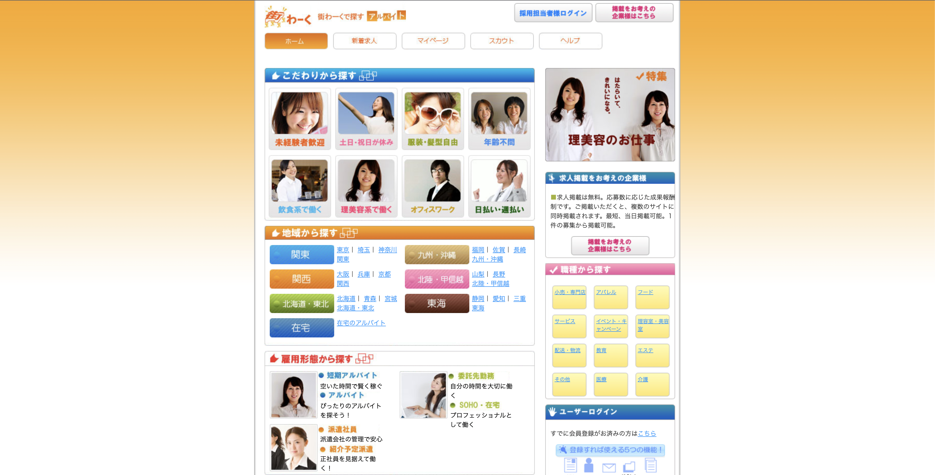 街ワークは32サイトを抱える求人媒体ネットワークに出稿可能なワークゲートが運営するアルバイト求人サイトになります。ワークゲートに掲載することで現在ネットワークに参加中のサイトに無料転載可能なだけでなく、応募課金型で掲載期間や掲載数にも制限なく掲載することが可能です。求人媒体ネットワークなのでユーザー層も幅広くアルバイト求人だけでなく正社員募集などの媒体にも掲載されますが、応募単価3,300円とリーズナブルな設定となっております。