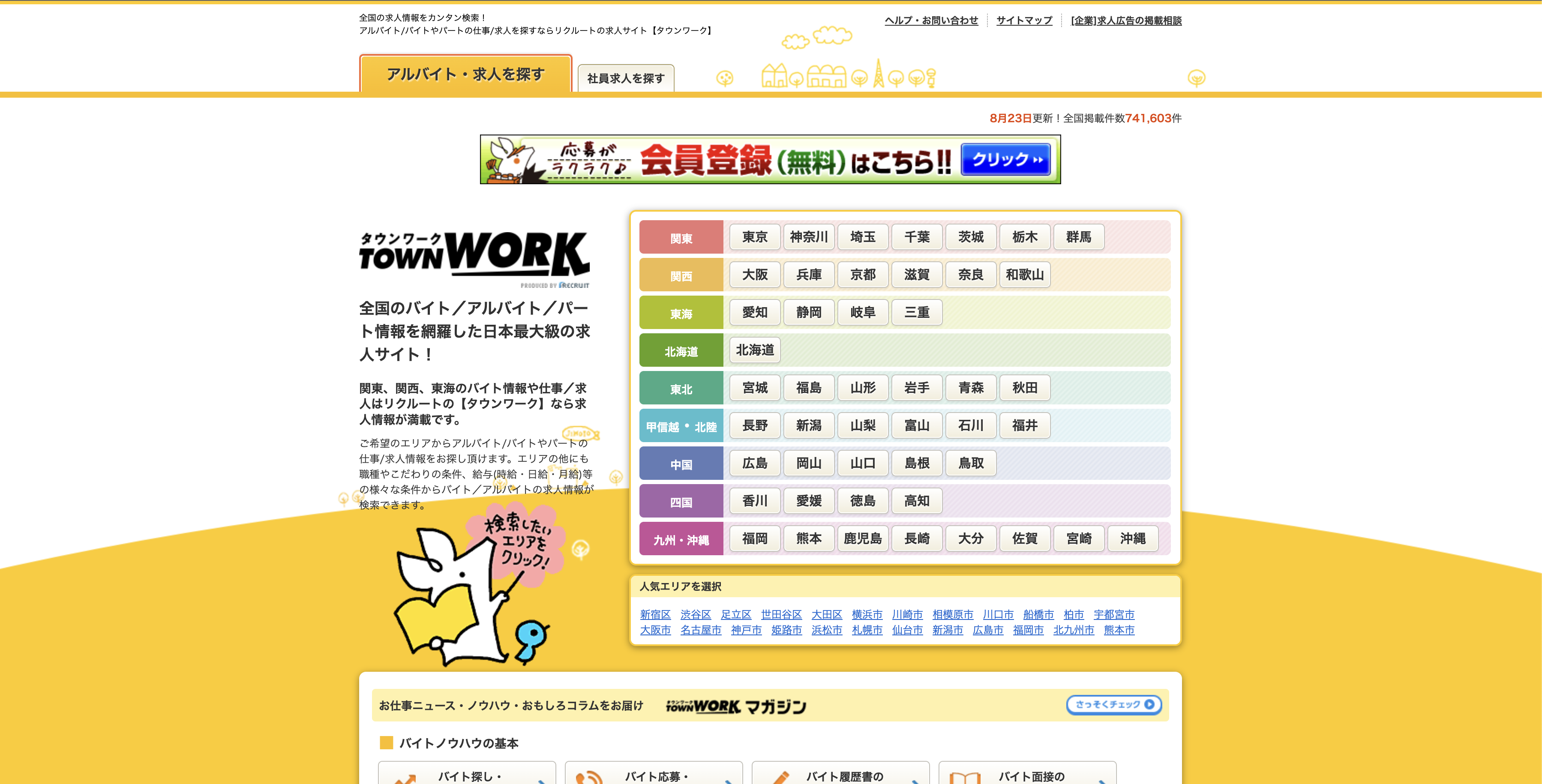 タウンワークはリクルートが運営する求人媒体で地域密着型メディアとして駅やコンビニなどで配布されているフリーペーパーとオンラインのタウンワークネットの双方に掲載することが可能です。インターネットサイトでは可視化の難しい電話応募数なども把握可能でメールだけでなくFAXでのサポートなど、インターネットが面倒だと感じている方でも利用しやすいのが特徴となっております。地域密着型ですので飲食店などローカルビジネスでのアルバイト募集には非常に効果が大きい媒体です。