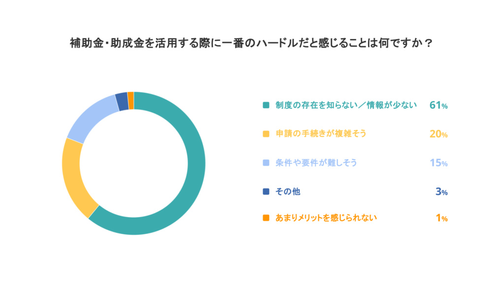 「制度の存在を知らない/情報が少ない」と回答した方の割合が61%と最も高く、認知や情報の不足が大きな課題として浮かび上がった。また、「手続きが複雑そう」(20%)、「条件が難しそう」(15%)といった ハードルの高さを感じる声も一定数見られた。一方で、「メリットを感じられない」と回答した方は1%にとどまり、制度自体への否定的な印象は限定的であることが分かった。
