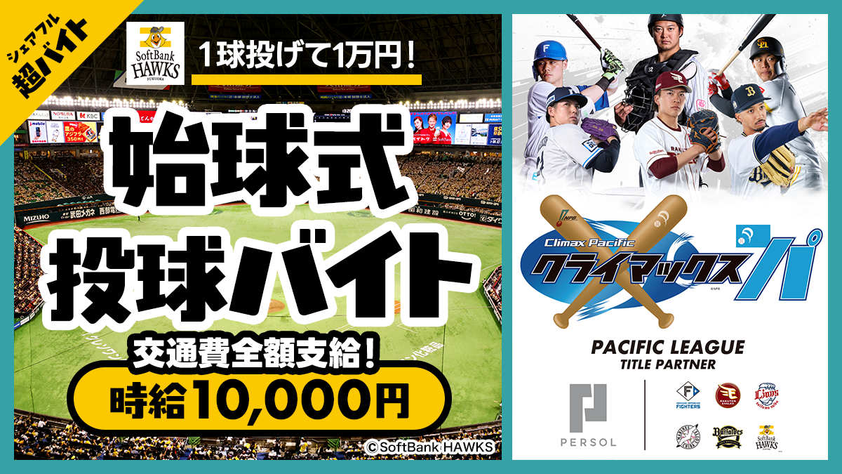 【1球投げて1万円】パ・リーグ クライマックスシリーズ「福岡ソフトバンクホークス」戦の始球式にて超バイト募集!