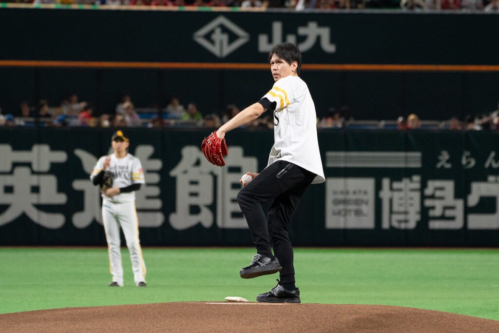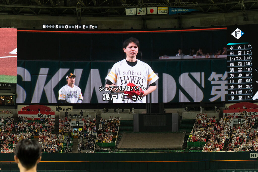 今回その大役を務めたのは、25年以上ホークスを応援し続けてきた錦戸さん。応募時には「“ホークス愛”を込めた一球で、ドームを熱く盛り上げます!」と熱いメッセージを添え、数多くの応募の中から見事に選出されました。