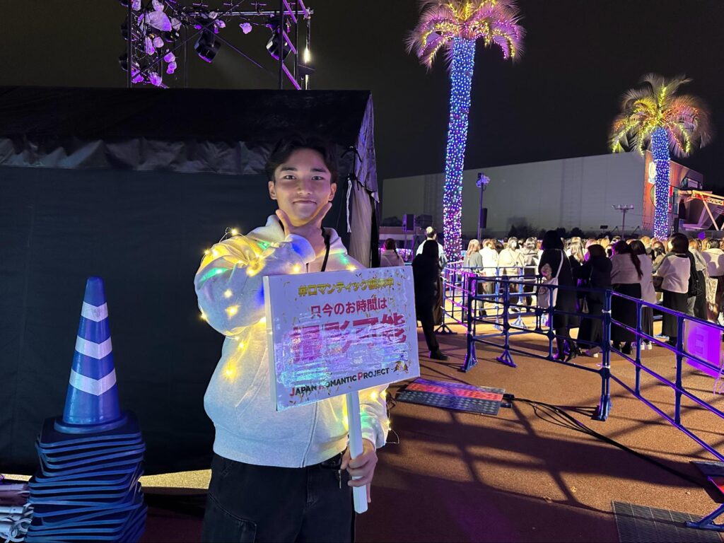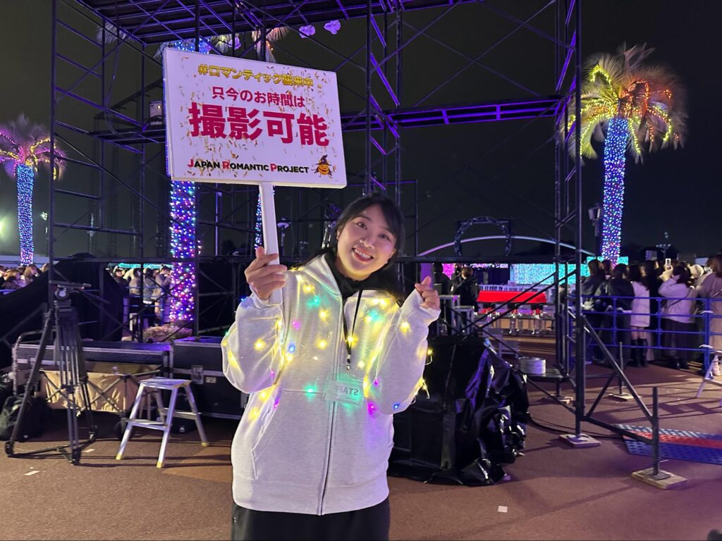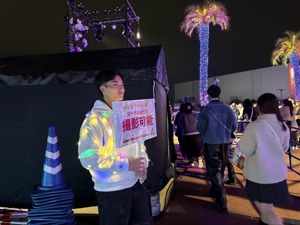 周りのイルミネーションと一体化しながら、”ロマンティック”に来場者たちを誘導しました!