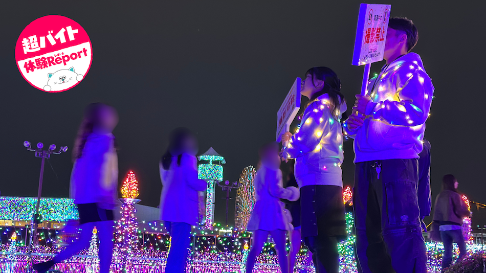 今回の超バイト会場はイルミネーションで彩られている遊園地・よみうりランド!本日のイベントは、普段はイルミネーションを見に来場者が絶えないこの施設を、なんと消灯してロマンティックを演出する「イルミネーション消灯式」のイベントです。
